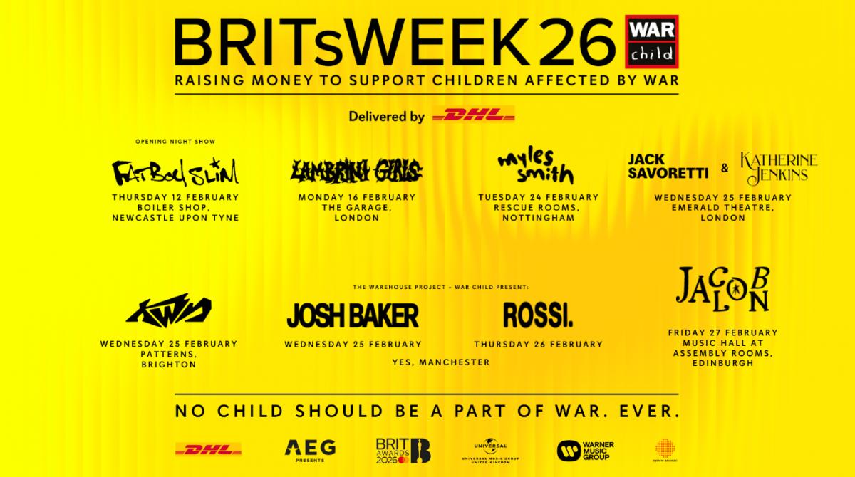 The first names have been revealed for the 2026 edition of BRITs Week for War Child.