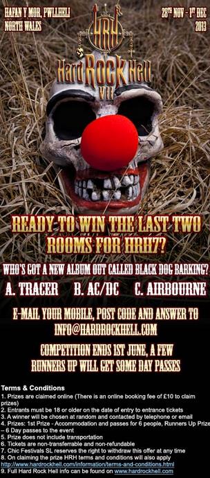 Hard Rock Hell 7 (Cirque Du Rock), which takes place from November 28th to 30th at Hafan Y Mor Holiday Park in Pwllheli, North Wales, has launched a competition giving you the chance to win the last two rooms available at HRH7!