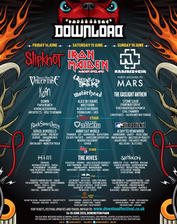 Download Festival UK & Ireland Tour Dates are as follows