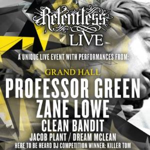With an audience of competition winners filled up with enough energy drink to make piss leak from their eyeballs, Relentless Live certainly had all the trappings of an interesting night. Headlined by Professor Green, Zane Lowe and Pure Love and staged at the venerable Old Billingsgate Market, there was also small chance of anyone complaining of it having a one-sided bill.
