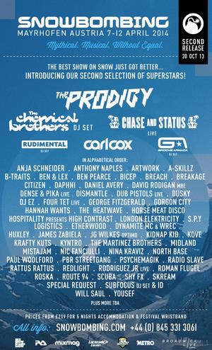 Going fully electric, Snowbombing has announced the high-calibre, blockbuster names of the Prodigy, Chemical Brothers and Groove Armada for the 2014 festival.