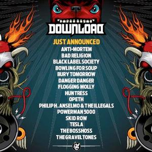 A further 15 bands have been announced for Download 2014, with Anti-Mortem, Bad Religion, Black Label Society, Bowling For Soup, Bury Tomorrow, Danger Danger, Flogging Molly, Huntress, Opeth, Phil Anselmo & The Illegals, Powerman 5000, Skid Row, Tesla, the Bosshoss and the Graveltones joining the line up for the Donington bash.