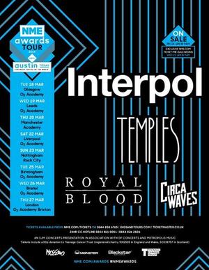 Interpol will headline the NME Awards Tour in March 2014, with support from Temples, Royal Blood and Circa Waves.