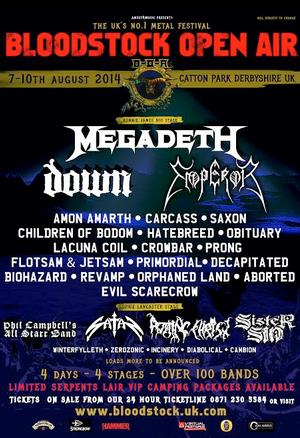 Friday night’s main stage headliners are New Orleans sludgemeisters, Down. Joining them to head up Saturday night are black metal overlords, Emperor and closing out proceedings on Sunday are thrash legends, Megadeth. Also announced so far are Amon Amarth, Obituary, Crowbar, Hatebreed, Lacuna Coil, Carcass, Prong, Children Of Bodom, Saxon, Decapitated, Flotsam & Jetsam, Primordial and Evil Scarecrow.