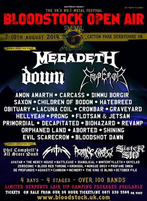 Bloodstock returns to Catton Park, Derbyshire on August 7 to 10, 2014. Keep up to date with the very latest info on Bloodstock's official website and at Facebook.