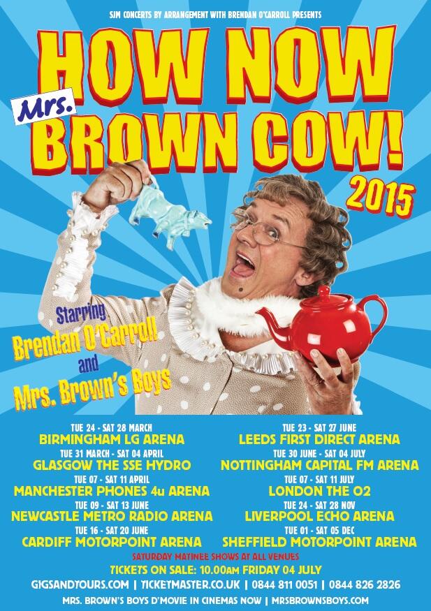 Following the release of D’Movie, Mrs Brown’s Boys, written by and starring Brendan O’Carroll, will return to arenas in 2015 with a brand new show. The tour will be heading across the UK, taking over some of country’s biggest venues for five day residencies.