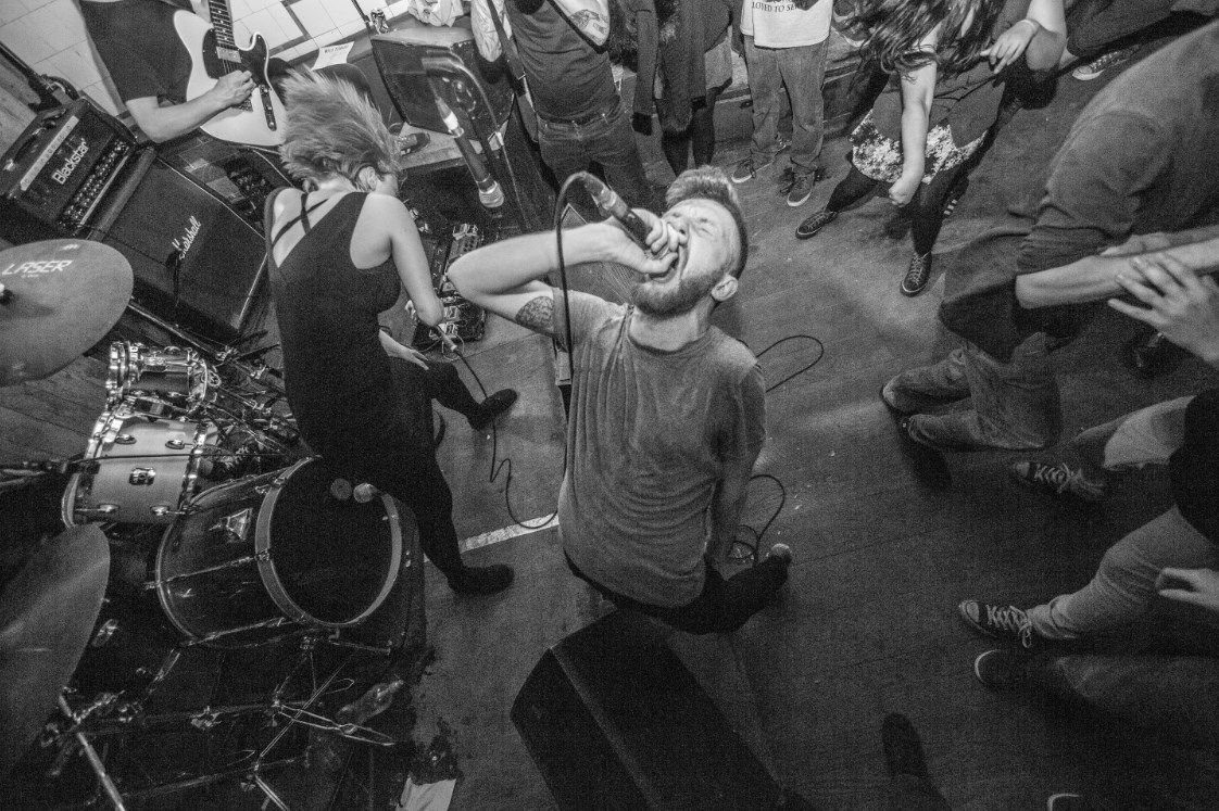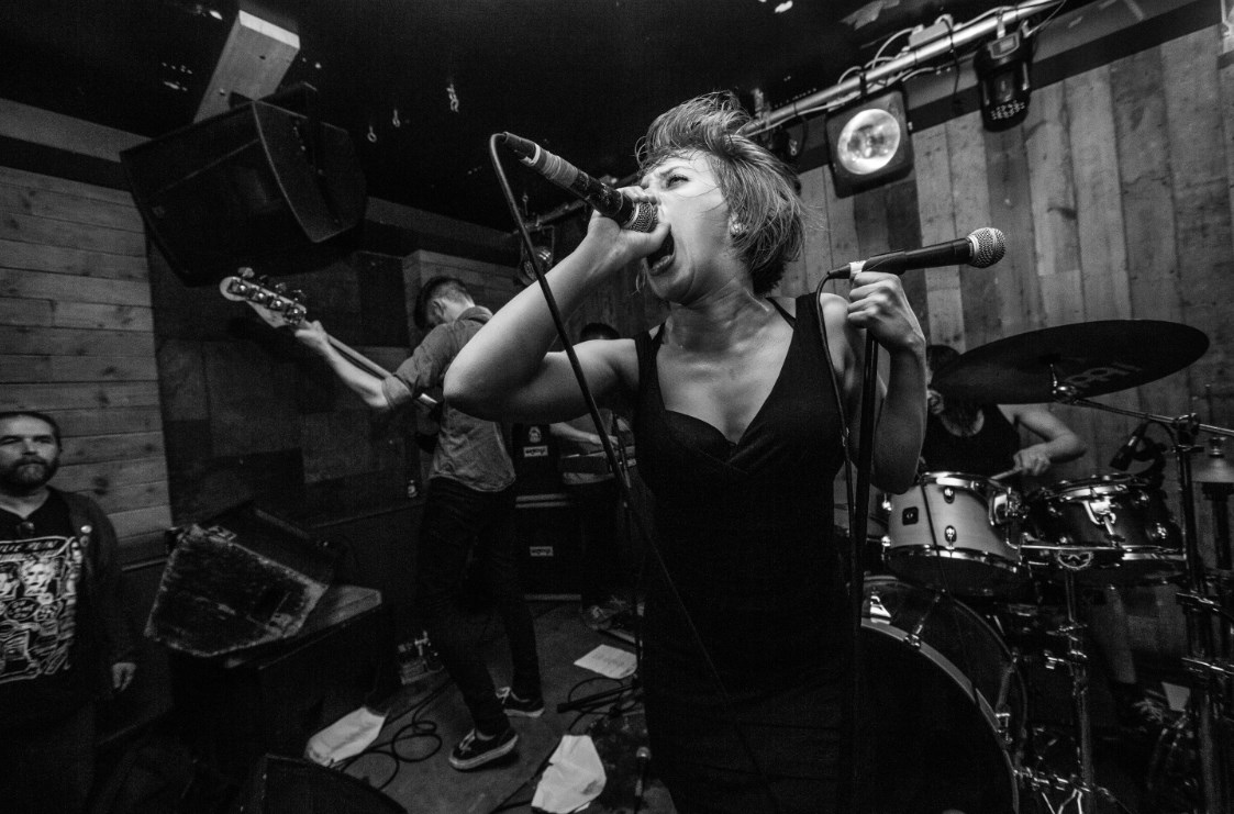 By the time they hit the tiny stage at the Waiting Room, they’ve clearly worked off any ring rust. Fairweather and Pitts are watertight, sending each time signature jump thudding into chests. James Spence pogos behind his rack of synths. Eva remains the dynamic focal point, a blur of controlled fury and punishing physicality. At the end of the evening, she’ll pull glass from her leg.