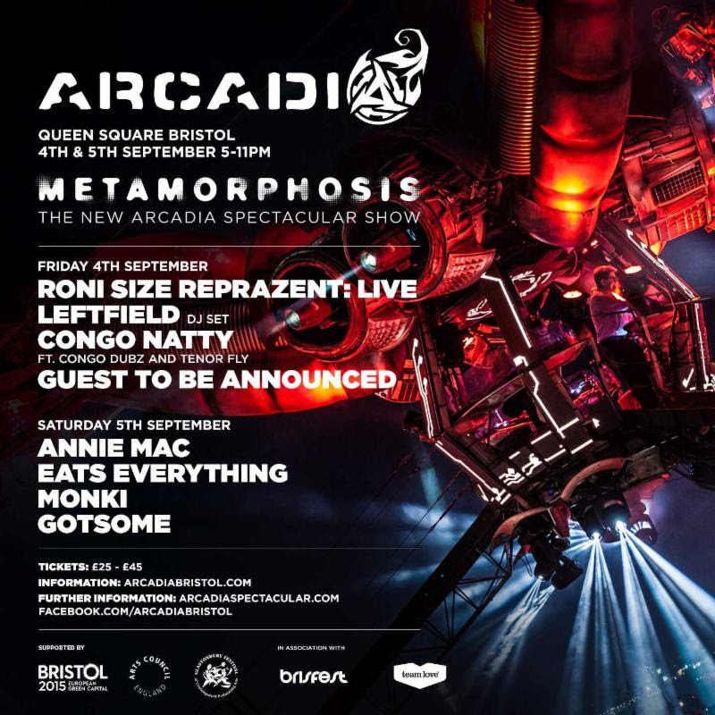 Arcadia Bristol have announced the line up for their Metamorphosis event, featuring Annie Mac, Eats Everything and Leftfield.