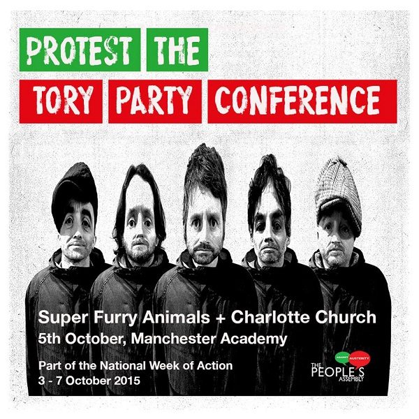 The Super Furry Animals have announced a Manchester show, with Charlotte Church, to protest the Tory Party Conference.