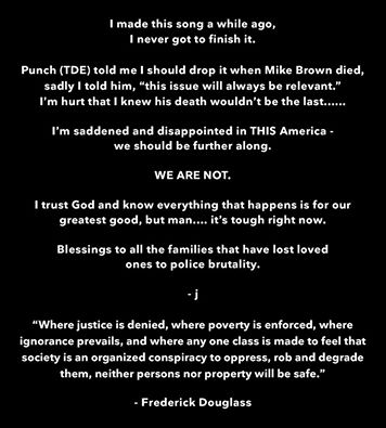 You can listen to the track, which was accompanied by a statement that also references the police shooting of Mike Brown in Ferguson, Missouri, exclusively through Tidal.