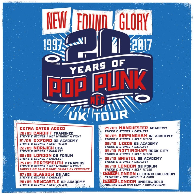 New Found Glory Upcoming Tour Dates are as follows Wed September 20 2017 - CARDIFF Tramshed