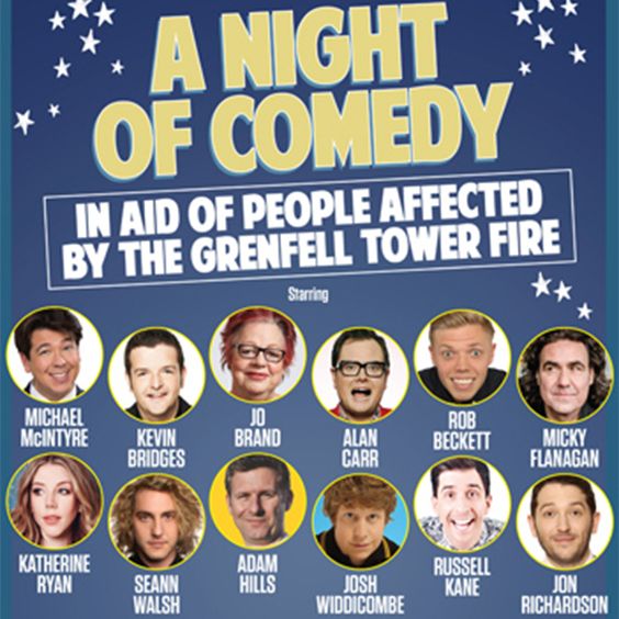 A number of big name comedians will perform at London’s Eventim Apollo on June 27 to raise funds for those affected by the Grenfell Tower fire.