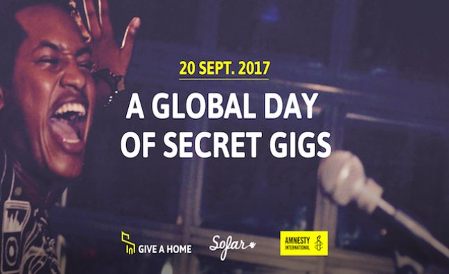 The full list of gigs is available on sofarsounds.com/giveahome, where people have until September 10 to apply for tickets for the shows taking place in their city.