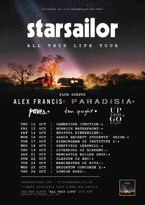 The tour supports the release of Starsailor’s fifth studio album, 'All This Life', their first full length since 2009.