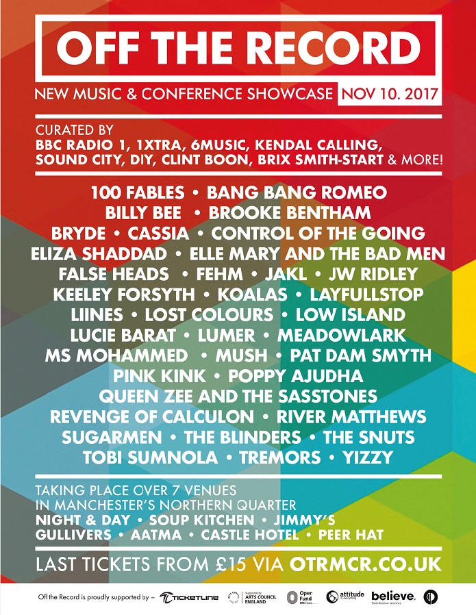 Off The Record will take place on November 10 and, in addition to industry talks, including conversations with Cabbage and False Heads, and seminars during the day, it will play host to performances by more than 35 new artists across seven venues. Check out the full line up on the poster below.