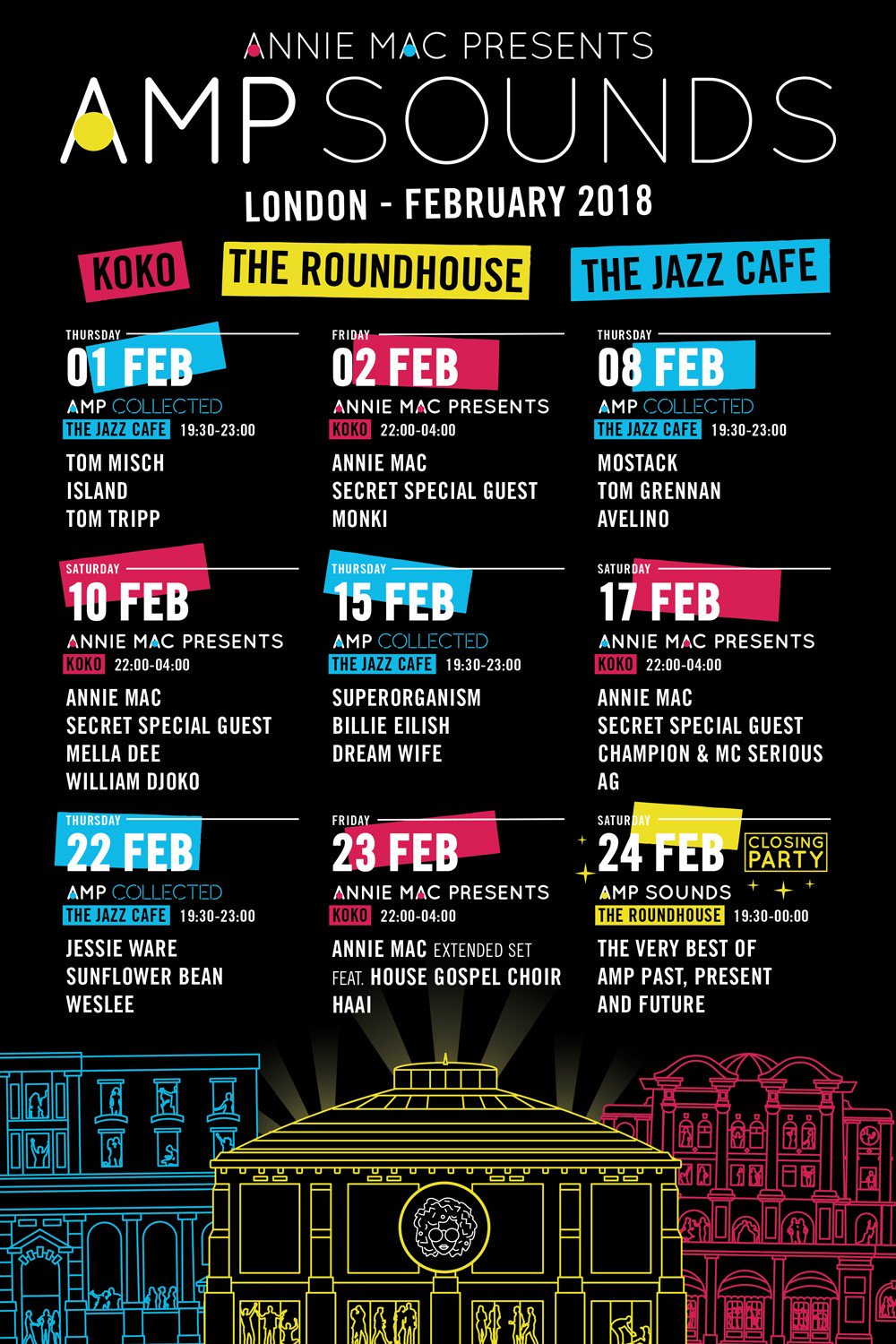 Annie Mac will present AMP Sounds at three London venues across London next year.