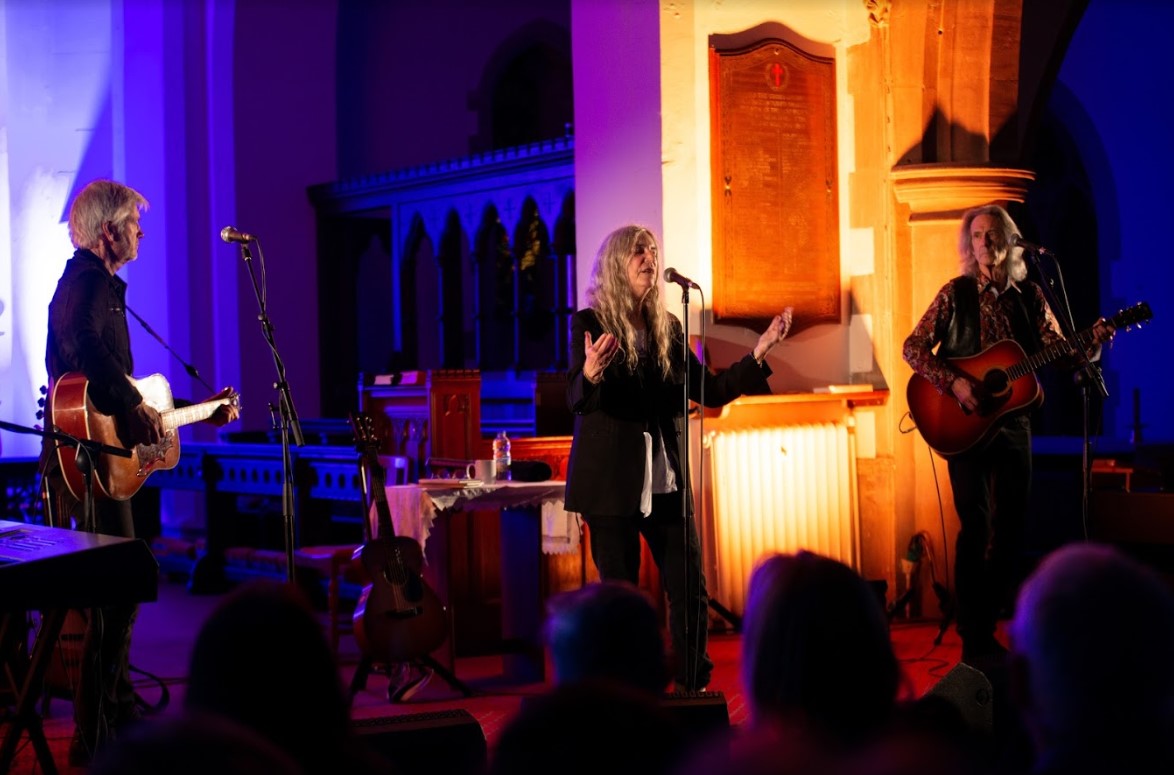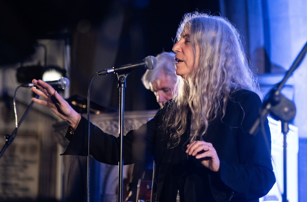 Underneath the building’s backlit arches, Patti Smith lets a small crowd see the pieces of her that fell into place along the way. Five decades on from her first spoken word sets with Lenny Kaye at St. Mark’s in the Bowery, she delivers poetry about romance, art and political decay, and sings some of the greatest rock songs ever put to tape.