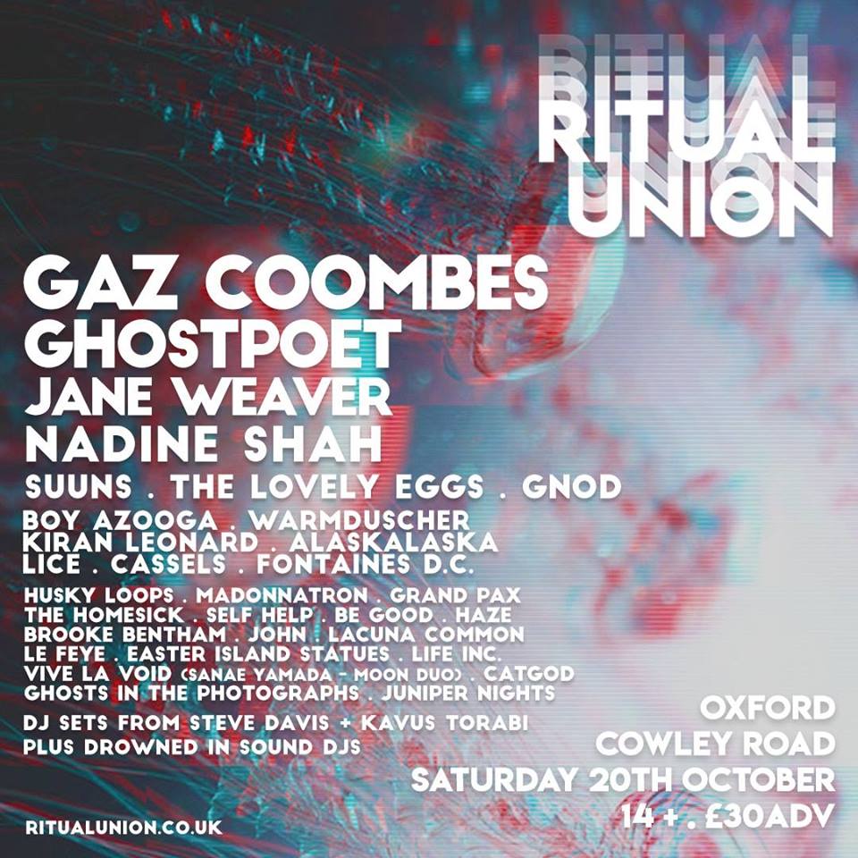Gaz Coombes, Ghostpoet and Nadine Shah are among the acts set to appear at Ritual Union festival in Oxford this autumn.