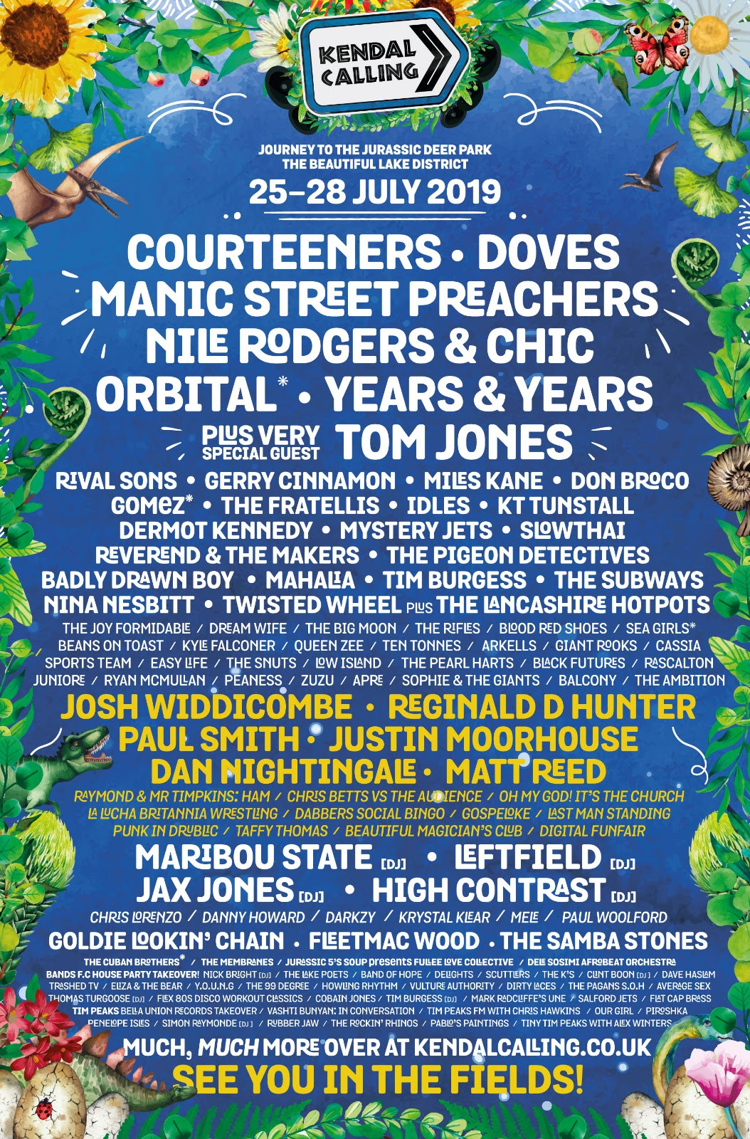 Who? Joining headliners the Courteeners, Doves, Manic Street Preachers, Nile Rodgers with Chic, and Orbital are new additions Reverend and the Makers, Don Broco, the Pigeon Detectives and Tim Burgess, among others, while Reginald D Hunter and Josh Widdicombe are part of the new wave of acts confirmed for the comedy bill.