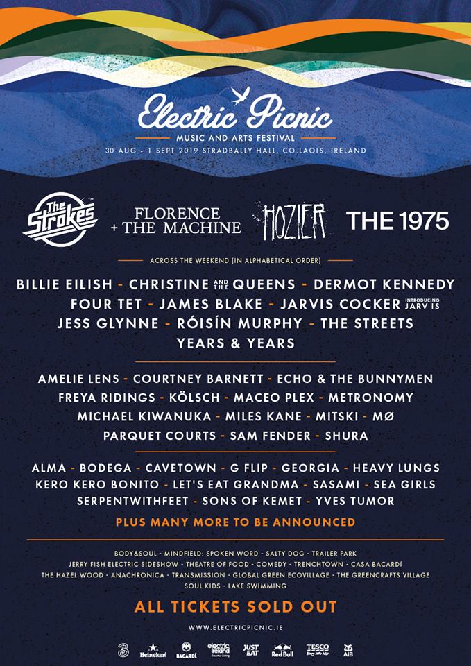 Who? The Strokes, Florence and the Machine, Hozier and the 1975 top the bill, while also set to appear are Billie Eilish, Christine and the Queens, Dermot Kennedy, Four Tet, James Blake, Jarvis Cocker (Introducing Jarvis), Jess Glynne, Roísín Murphy, the Streets, Years and Years, Amelie Lens, Courtney Barnett, Echo and the Bunnymen, Freya Ridings, Kölsch, Maceo Plex, Metronomy, Michael Kiwanuka, Miles Kane, Mitski, MØ, Parquet Courts, Sam Fender, Shura, Alma, Bodega, Cavetown, G Flip, Georgia, Heavy Lungs, Kero Kero Bonito, Let's Eat Grandma, Sasami, Sea Girls, Serpentwithfeet, Sons Of Kemet and Yves Tumor. More acts are due to be announced.