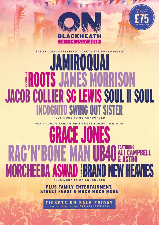 Tickets? Tickets go on general sale at 10am on April 12. Click here to get your ONBlackheath tickets through Stereoboard.