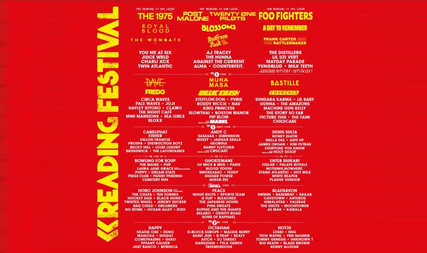 Headliners: The 1975, Post malone, Twenty One Pilots, Foo Fighters.