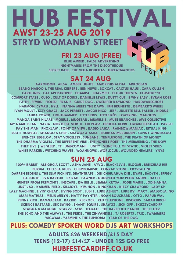 They join 120 previously announced acts, including Woahnows, 100% Rabbit, Aaronson, Ailsa, Alekxandr, Amber Lights, Arkocean, Asha Jane, Ayvo, Beano Naboo and the Real Keepers, Blʌckǝlvis, Bloom!, Blue Amber, Boxcat, Breichiau Hir, Burum, Cactus Haus, Cara Cullen, Carolines, Cat Apostrophe, Charmpit, Chelsea Blues, Chembomusic, Cloud Thieves, Clusterf*Ck, Comfort State, Crystalline, Danielle Lewis, Darren Eedens and the Slim Pickin's, Deathtraps, Die! Chihuahua Die!, Dusty Cut, Dyme, Eädyth, Ell South, Ellie Parris, Eva Bartok, Evrah Rose, False Advertising, Fawner, Fioled, Godspeed You! Peter Andre, Guide Dog, Gwenifer Raymond, Hitesh Mistry, Hunter From Fremonte, Hyll, Inanna Meets The Dawn, Irn Brunette, Isa Belle, Isembard's Wheel, Ivan Moult, Jack Perrett, Jeff, Jemma Krysa, Jodie Marie, Juliette Bell Salter, Karmen Field, Kiddus, Killjoys, Kim Hon, Kizzy Crawford, Laura Power, Lighthammer, Little Red, Livin' Cheap, Living Body, Mahouts, Malgola No, Manga Saint Hilare, Mari Mathias, Melin Melyn, Mӧbius, Mugstar, My Name Is Ian, Natty Paynter, Nightmares From The Discotheque, North By North, Oh Peas!, Ophelia Xerri, Owain Felstead, Papur Wal, Penny Rich, Phoxjaw, Point Of View, Radio Laika, Rainbow Maniac, Ramnastax, Risorius, Scott Howells, Secret Base, Sex Swing, Siobhan Mccrudden, Spencer Segelov, Stay Voiceless, Sybs, Telgate, Tenplusone, the Barefoot Bandit, the Death Of Money, the D Teez, the Dharma Violets, the Echo and the Always, the Honest Poet, the Mermerings, the Now, the Vega Bodegas, Threatmantics, Violet Skies, Wigwam, Witching Waves, Worldcub, Yasmine and the Euphoria, Year Of The Dog, Ynys, and Young Garbo.