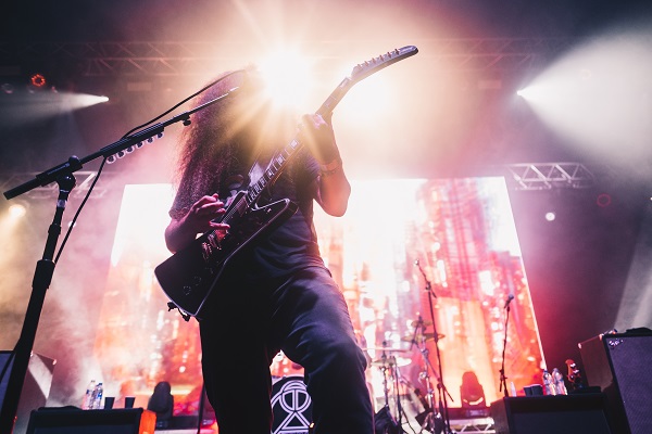 Opening day was a bit kinder weather wise, with Big Lad kicking things off to a packed crowd spilling out of PX3 and into the sunshine. Cultdreams followed with an intense set on the Bixler Stage, and then came a rousing performance from Pigs Pigs Pigs Pigs Pigs Pigs Pigs at Yohkai. Festivities were in full swing after that, with Raketkanon, Daughters and headliners Coheed and Cambria all delivering career-defining sets.
