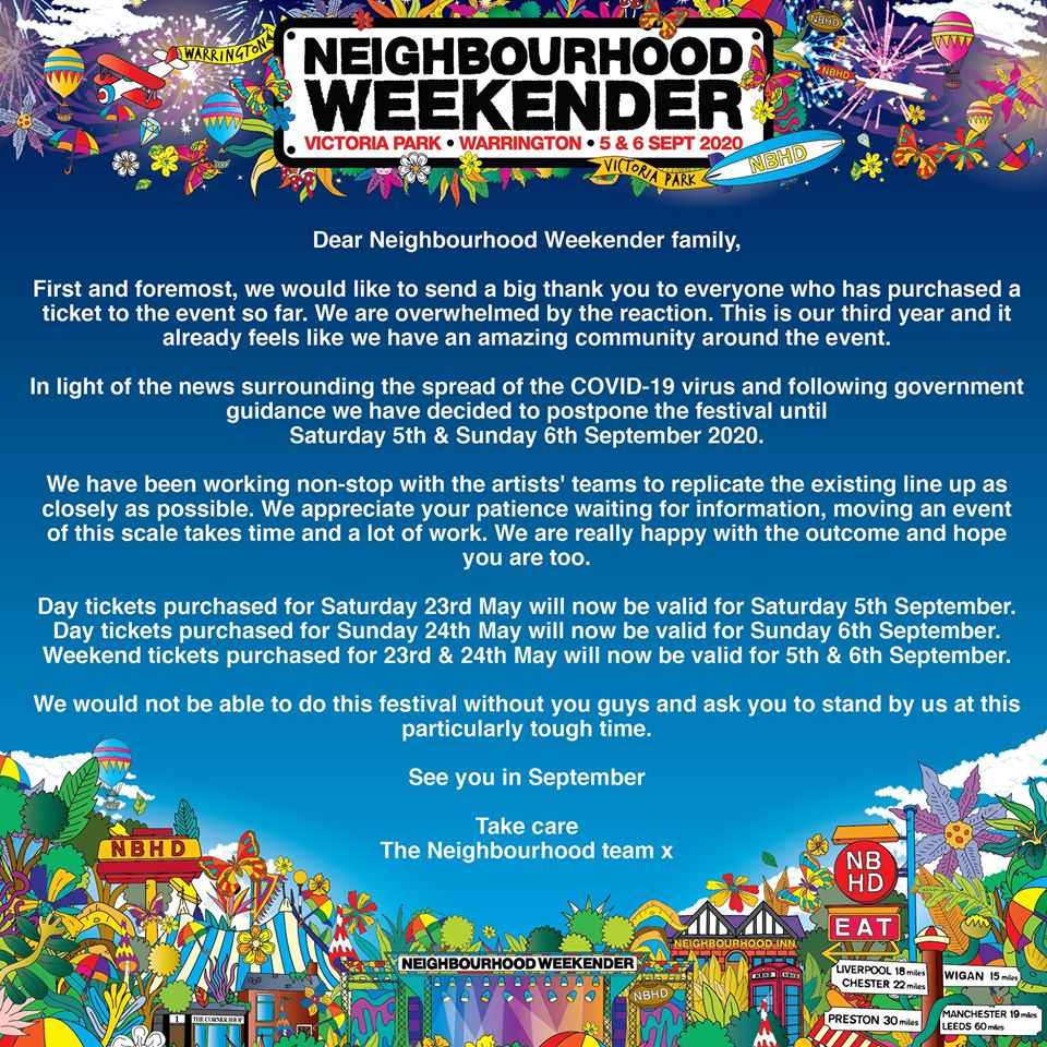 The Neighbourhood Weekender has been rescheduled.