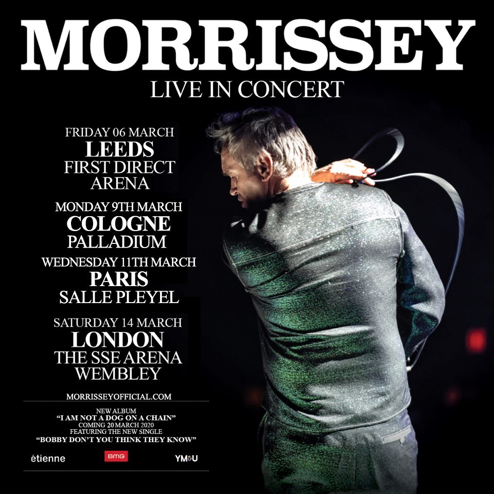 The former Smiths frontman will perform at Leeds' First Direct Arena on March 6, Cologne Palladium on March 9, Salle Pleyel in Paris on March 11 and the SSE Arena Wembley in London on March 14. Tickets go on general sale at 9am on January 24.