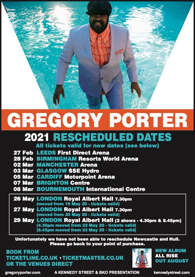 Gregory Porter has rescheduled his upcoming UK tour due to the coronavirus pandemic.