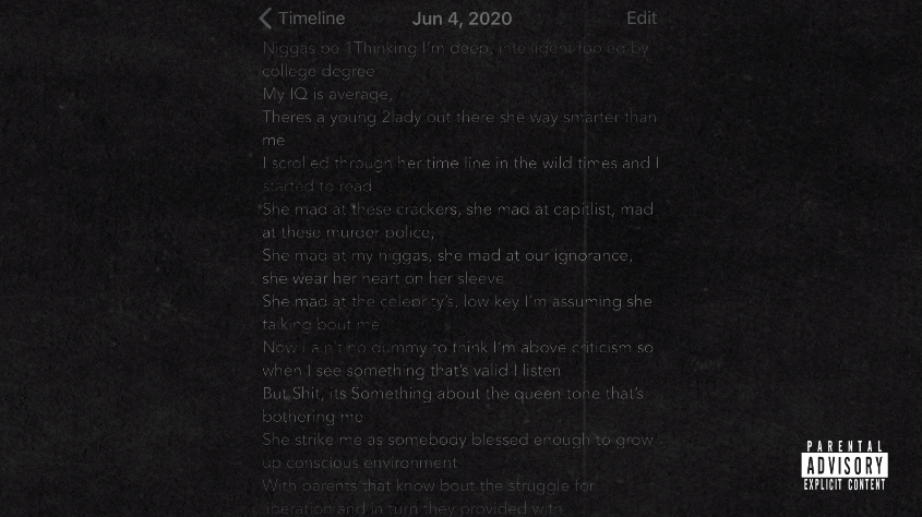 Speculation suggests that its thematic drive is a nod to recent activism and criticism of big name artists by the Chicago rapper Noname. “My IQ is average, there's a young lady out there, she way smarter than me,” Cole intones. “I scrolled through her timeline in these wild times, and I started to read. She mad at these crackers, she mad at these capitalists, mad at these murder police.”