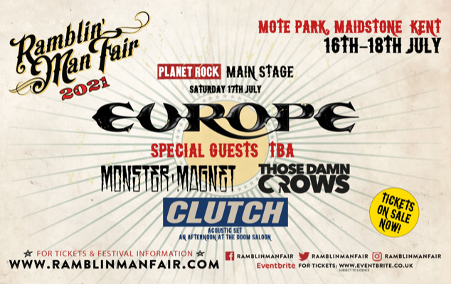 Who? Clutch will headline the main stage on Friday, while Europe will top the bill on Saturday. Other acts confirmed include Monster Magnet, Those Damn Crowes, Foghat, the Quireboys, Massive Wagons, the Steel Woods, the New Roses, Bad Touch, Hands off Gretel, These Wicked Rivers, Curved Air, Pure Reason Revolution, Moon Safari, Lazuli, Blurred Vision, Eric Gales, Samantha Fish, the Inspector Cluzo, Connor Selby, and Blindstone.