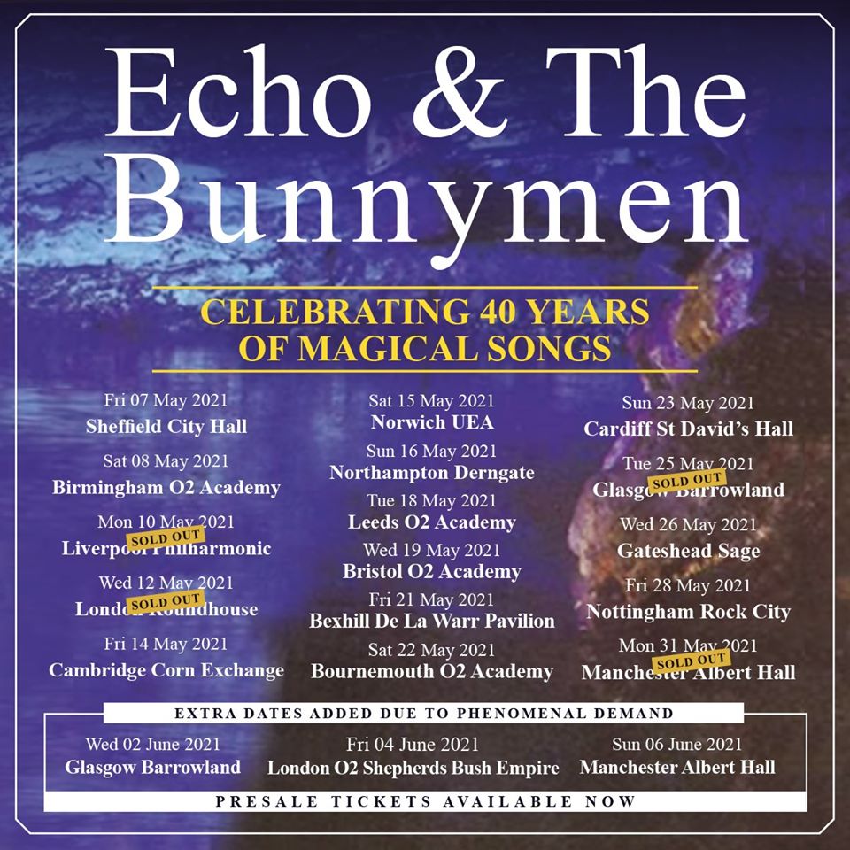 Echo and the Bunnymen have added a handful of dates to their UK tour due to demand. Echo and the Bunnymen tickets are on sale at 9.30am today.