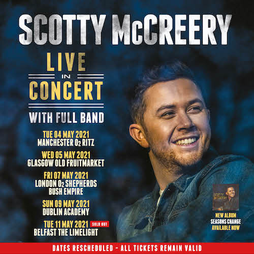 Scotty McCreery has moved his UK and Ireland tour to spring 2021 due to COVID-19.