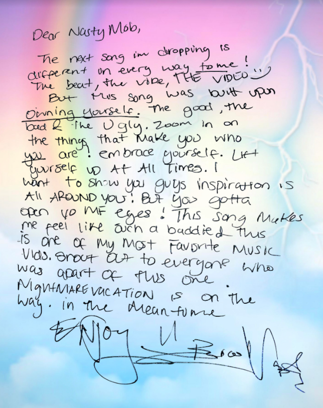 The next song is I’m dropping is different in every way to me! The beat, the vibe, the video. But this song was built upon owning yourself. The good, the bad and the ugly. Zoom in on the things that make you who you are! Embrace yourself. Lift yourself up at all times. I want to show you guys inspiration is all around yo MF eyes! This song makes me feel like such a baddie and this is one of my most favorite music vids. Shout out to everyone who was a part of this one. Nightmare Vacation is on the way. In the meantime, enjoy!