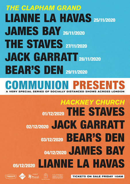 It was previously announced that the Staves, Bear's Den and Jack Garratt will also perform as part of the series. Tickets for all dates go on sale at 10am on October 23.