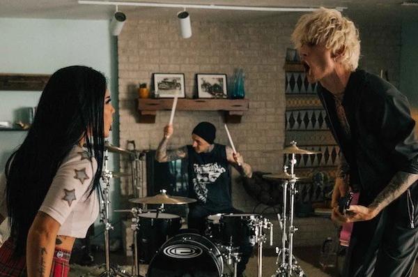 The pop-punk banger appears on the rapper turned rocker's Travis Barker-produced album, 'Tickets To My Downfall', which landed in September. The Blink-182 sticksman also plays on the record and makes a brief drumming cameo in the clip.