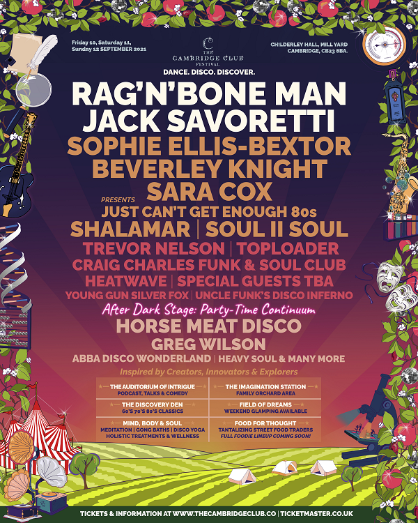 Previously confirmed acts include Saturday headliner Jack Savoretti, plus Sophie Ellis-Bextor, Beverley Knight, Shalamar, Soul II Soul, Craig Charles Funk and Soul Club, Toploader, Heatwave, Young Gun Silver Fox, Uncle Funk’s Disco Inferno, Horse Meat Disco, Greg Wilson and more, with new acts still to be announced.