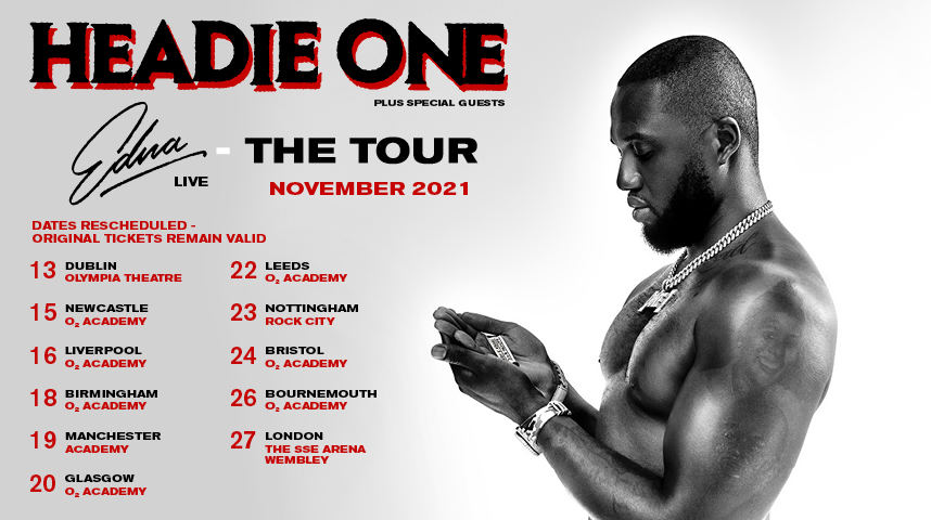 Headie One is hitting the road in support of his debut studio album, 'Edna', which arrived in October 2020 and reached number one on the UK's Official Albums Chart.