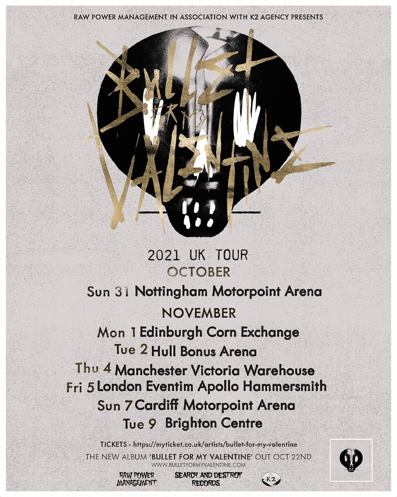 Bullet For My Valentine Upcoming Tour Dates are as follows Sun October 31 2021 - NOTTINGHAM Motorpoint Arena