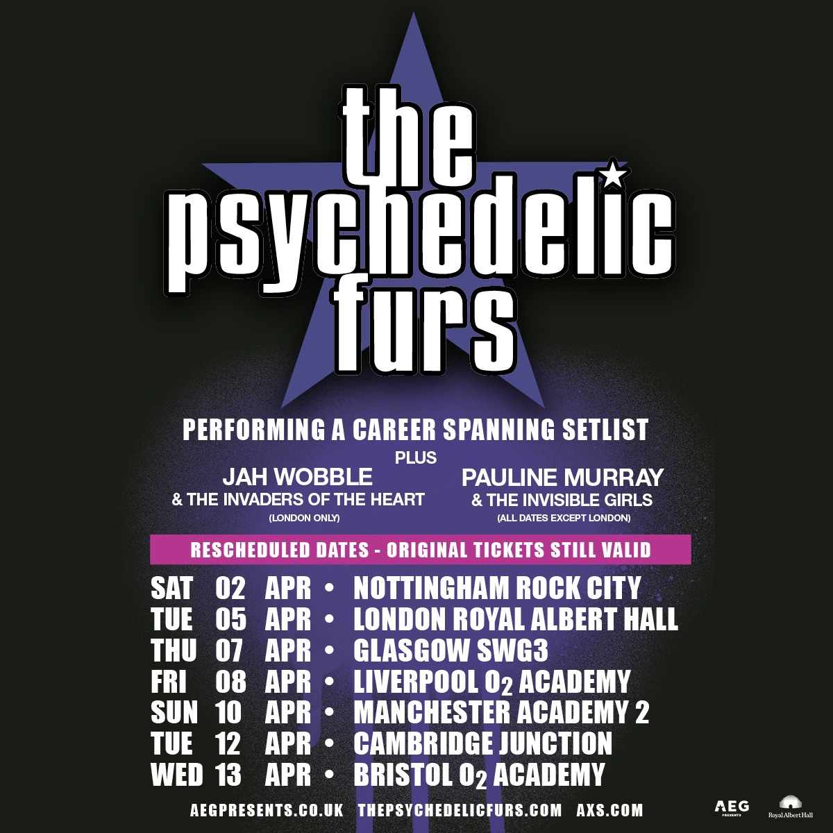 Support will come from Pauline Murray and The Invisible Girls at all dates except London, where Jah Wobble and The Invaders Of The Heart will open the show.
