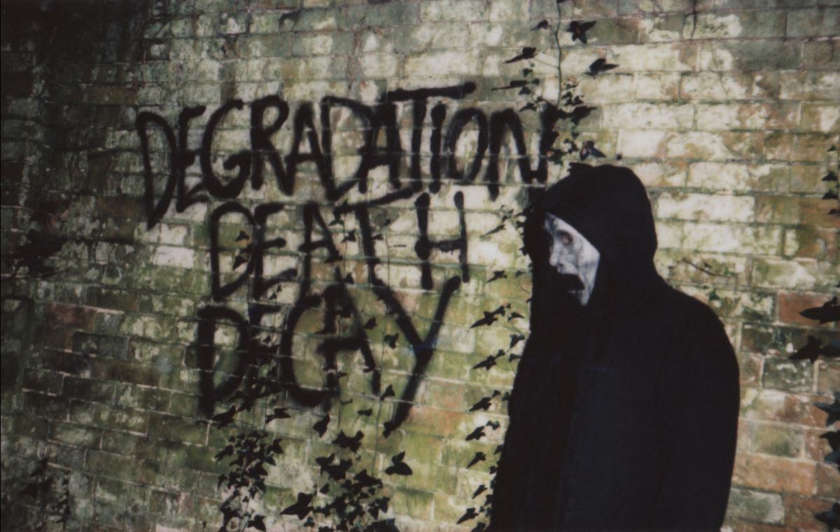 That’s why he has chosen to hide his face behind the black and white visuals promoting his upcoming debut album, ‘Degradation, Death, Decay’. The Grim Reaper-esque figure seen on the LP’s cover bears no resemblance to him and anybody could be wearing that distinctive mask, with its hollow caverns for eyes and mouth open in a permanent scream. “It’s about removing myself from the aesthetic of this project,” Miles says.