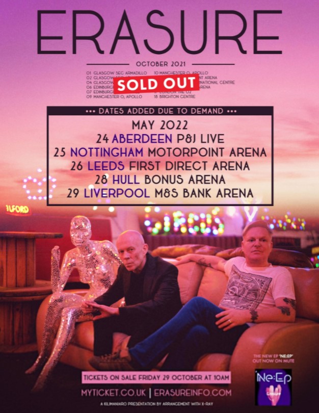 Following their sell-out run of shows earlier this month, Andy Bell and Vince Clarke will now also call at P&J Live in Aberdeen on May 24, Nottingham's Motorpoint Arena the next day, Leeds' First Direct Arena on May 26, Hull's Bonus Arena on May 28 and the M&S Bank Arena in Liverpool on May 29.