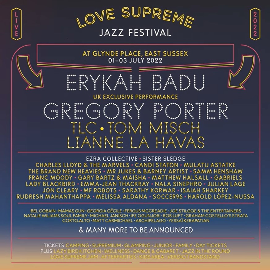 They join the previously announced Erykah Badu, TLC, Tom Misch, Lianne La Havas, Ezra Collective, Sister Sledge, Charles Lloyd feat Bill Frisell, Candi Station, Mulatu Astatke, The Brand New Heavies, Franc Moody, Gary Bartz and Maisha, Matthew Halsall, Emma Jean Thackray, Julian Lage, Nala Sinephro, MF Robots, Sarathy Korwar, Isaiah Sharkey, Rudresh Mahanthappa, Soccer96 and more that you can check out on the poster below.