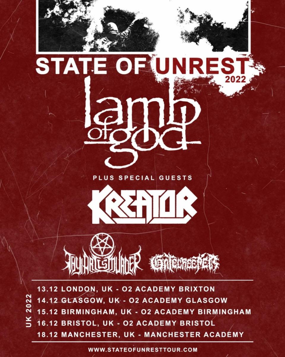 Lamb Of God have rescheduled their UK and European State Of Unrest Tour for a second time due to ongoing travel restrictions resulting from the COVID-19 pandemic.