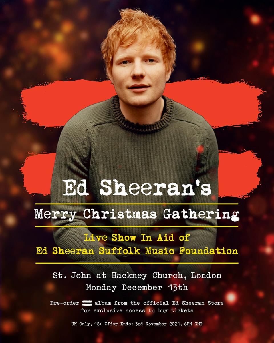 The special show will celebrate the festive season and help raise funds for the Ed Sheeran Suffolk Music Foundation. For a chance to get access to buy tickets, order '=' from Sheeran's online store before 6pm GMT on November 3.