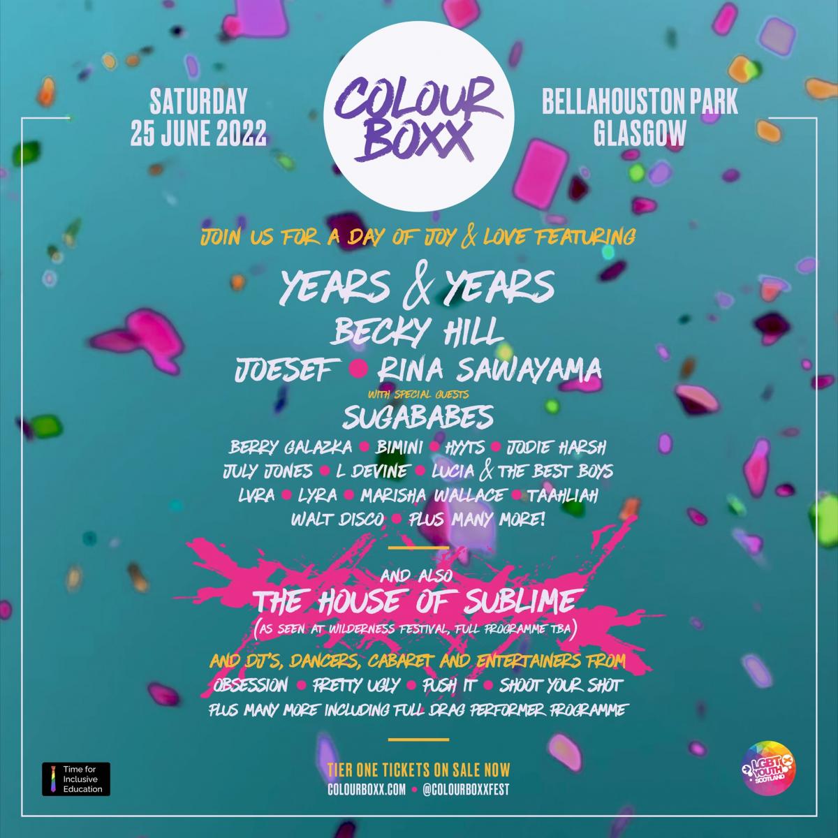 The inaugural edition of the Glasgow festival will take over Bellahouston Park on June 25, with Years and Years set to headline. Also set to appear are Becky Hill, Joesef, Rina Sawayama, Bimini, Jodie Harsh, Walt Disco and many more.