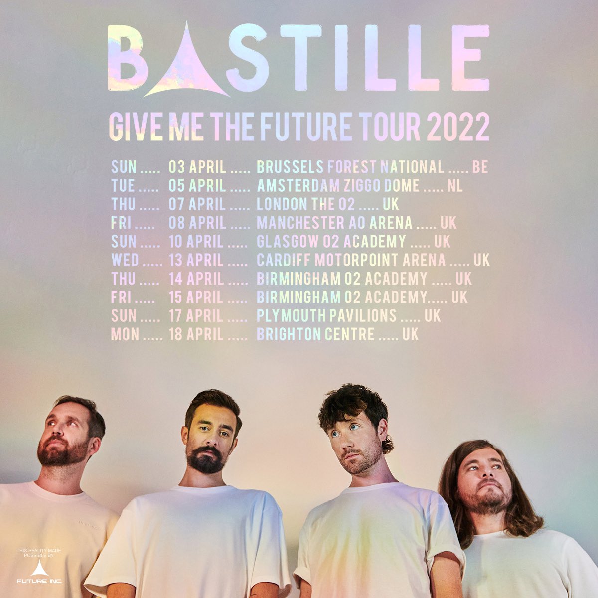 Bastille have announced the UK and European leg of the Give Me The Future Tour. Bastille tickets go on sale at 9am GMT today.