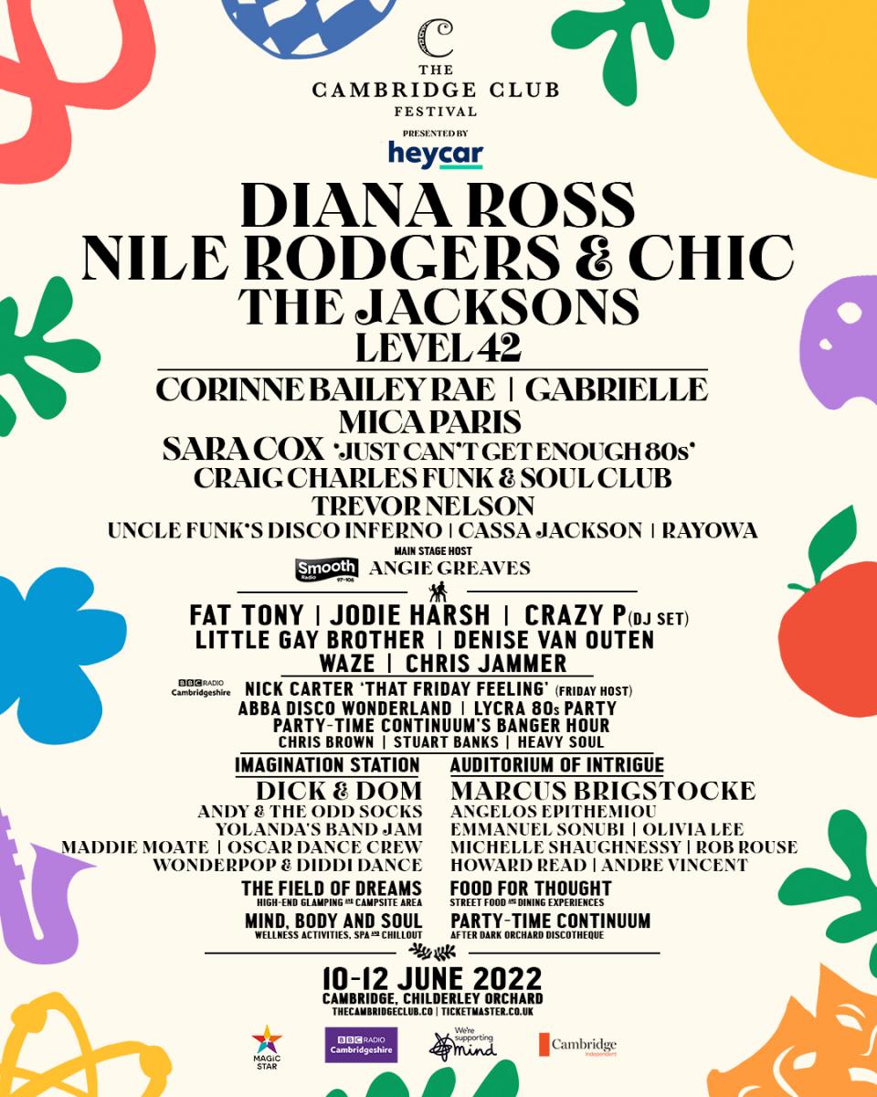 Level 42, Nile Rodgers and CHIC, and Diana Ross will headline the Friday, Saturday, and Sunday, respectively, while also previously announced for the weekend are Corinne Bailey Rae, Gabrielle, Craig Charles Funk And Soul Club, Trevor Nelson, Uncle Funk's Disco Inferno and Sara Cox, who'll host a Just Can't Get Enough '80s party.